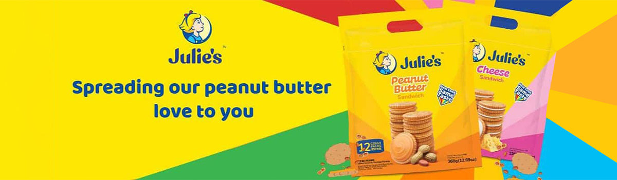Give in to your sweet cravings with Julie's Banana Cream Sandwich Biscuits. Featuring a fruity taste of banana flavoured cream sandwiched between golden baked, crispy and lightly salted round crackers, the Banana Flavoured Cream Sandwich is perfect for fruit lovers. They are a perfect accompaniment to your tea or coffee. They are prepared using the finest ingredients and its hygienic packaging ensures they remain fresh over a period of time
